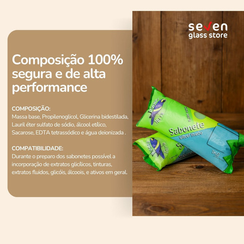 O nosso modelo das bases de glicerina da linha Nossa Terra, foram desenvolvidas por profissionais em laboratórios modernos para atender ao mercado artesanal de sabonetes. De fácil manipulação, possui um derretimento fácil com boa secagem em temperatura ambiente, não formando uma crosta grossa na superfície do sabonete dando excelente acabamento, fornecendo ótima espumação durante o uso do sabonete.