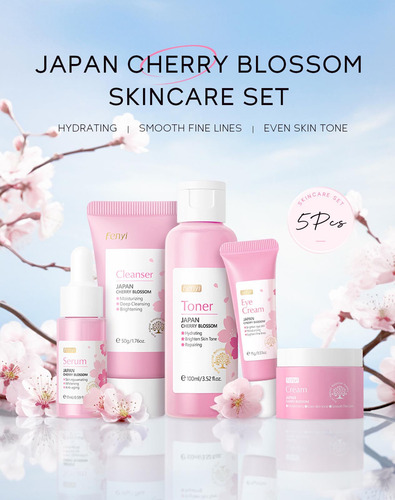 1 Pack Skin Care Set, Containing Cleansing Facial Cleanser+ Hydrating Facial Cream + Skin Refining Facial Serum+Firming Eye Cream+TONER 117ml |