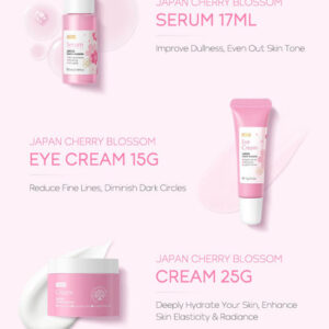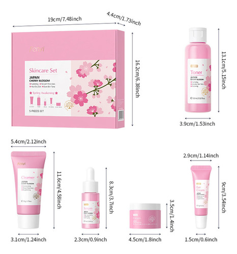 O pacote contém limpador facial 50g+creme facial 25g+creme para os olhos 15g+soro facial 17ml+tônico 100ml.