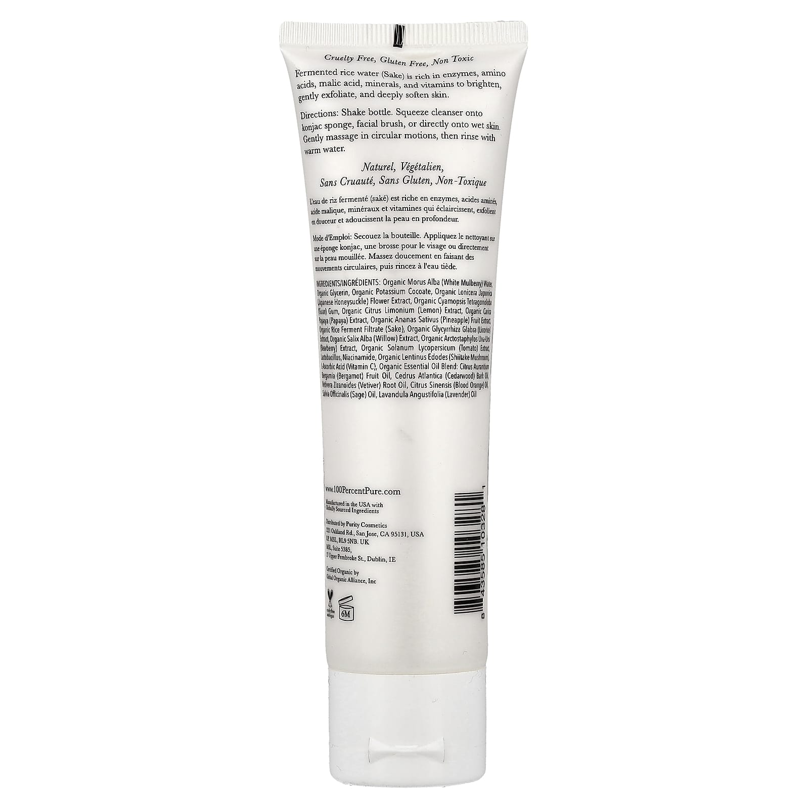 100% PURE Limpador de Água de Arroz Fermentado 100 ml (34 fl oz) – 100% PURE Beleza Limpeza Facial Sabonetes Faciais.