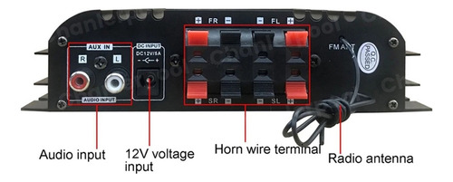 Tipo: Amplificador de carro (se você quiser usá-lo em casa, compre você mesmo o adaptador de energia)