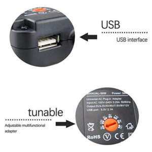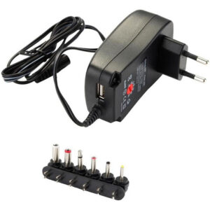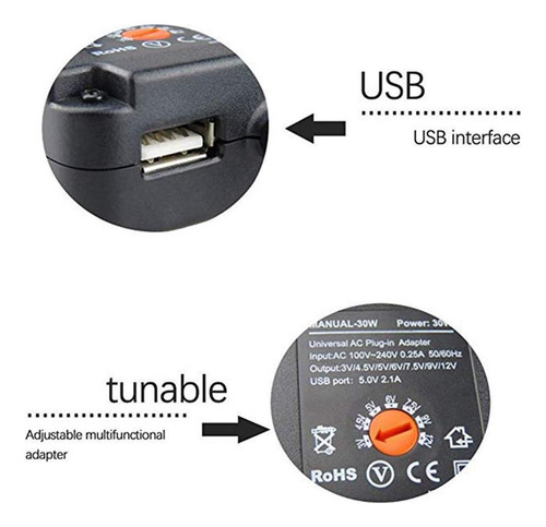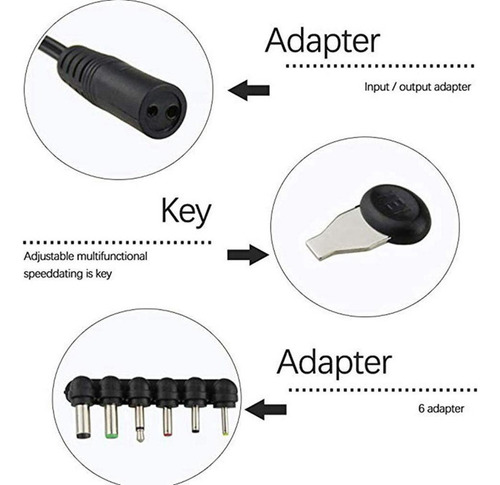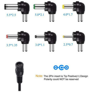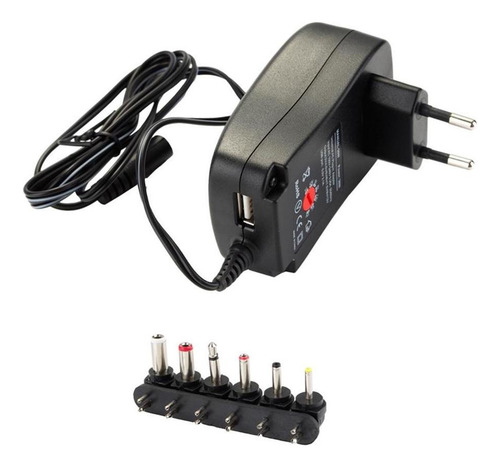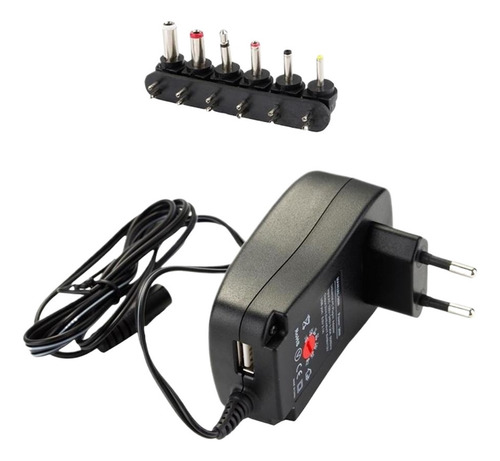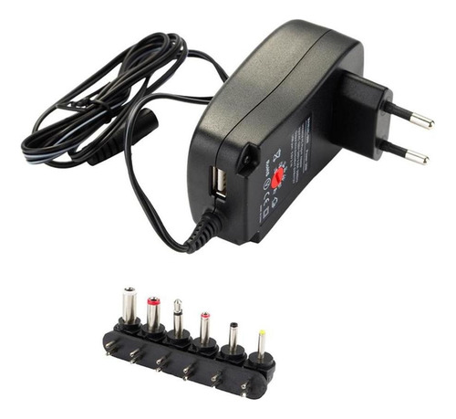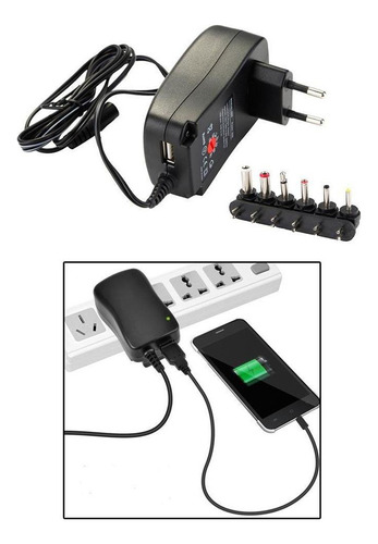 Possui saídas DC selecionáveis: 3/4.5/5/6/7.5/9/12V. O carregador também inclui 6 í destáveis, para que em quase todos os soquetes de entrada Usado para carregadores de bateria, impressoras, consoles de jogos e muitos outros aparelhos.
