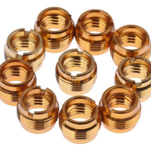 Adaptadores para converter o tamanho da rosca em clipes e suportes de microfone.