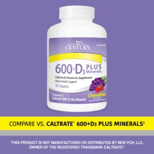 21st Century 600 + D3 Plus Minerais Ponche de Frutas 75 Comprimidos Mastigáveis – 21st Century Suplementos Minerais Cálcio Cálcio e Vitamina D.