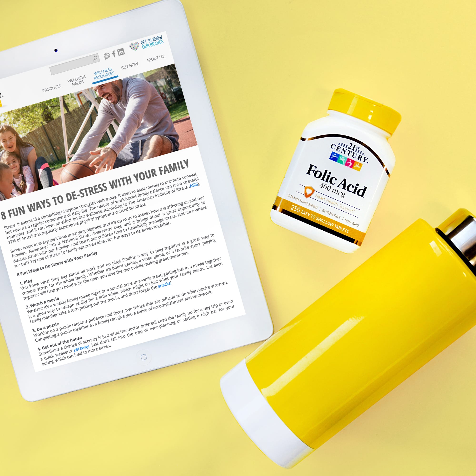 21st Century Ácido Fólico 400 mcg 250 Comprimidos Fáceis de Engolir – 21st Century Suplementos Vitaminas Vitamina B Vitamin B9 (Folate – Folic Acid).