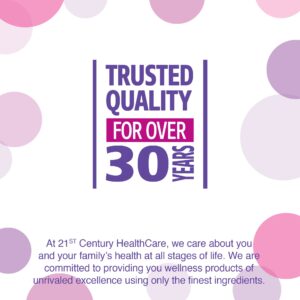 A fórmula Healthy Renewal Formula™ Potência Extra para Cabelos, Pele e Unhas da 21st Century® age para reforçar sua beleza natural de dentro para fora. Biotina e as Vitaminas A, C e E são nutrientes necessários para promover cabelos brilhantes, unhas fortes e pele vibrante.