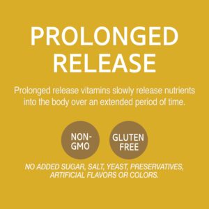 As vitaminas B são interdependentes entre si e inter-relacionadas em função; elas ajudam a converter alimentos em energia e ajudam a manter o sistema nervoso e os tecidos do corpo. As vitaminas de liberação prolongada fornecem nutrientes lentamente ao corpo por um longo período de tempo.
