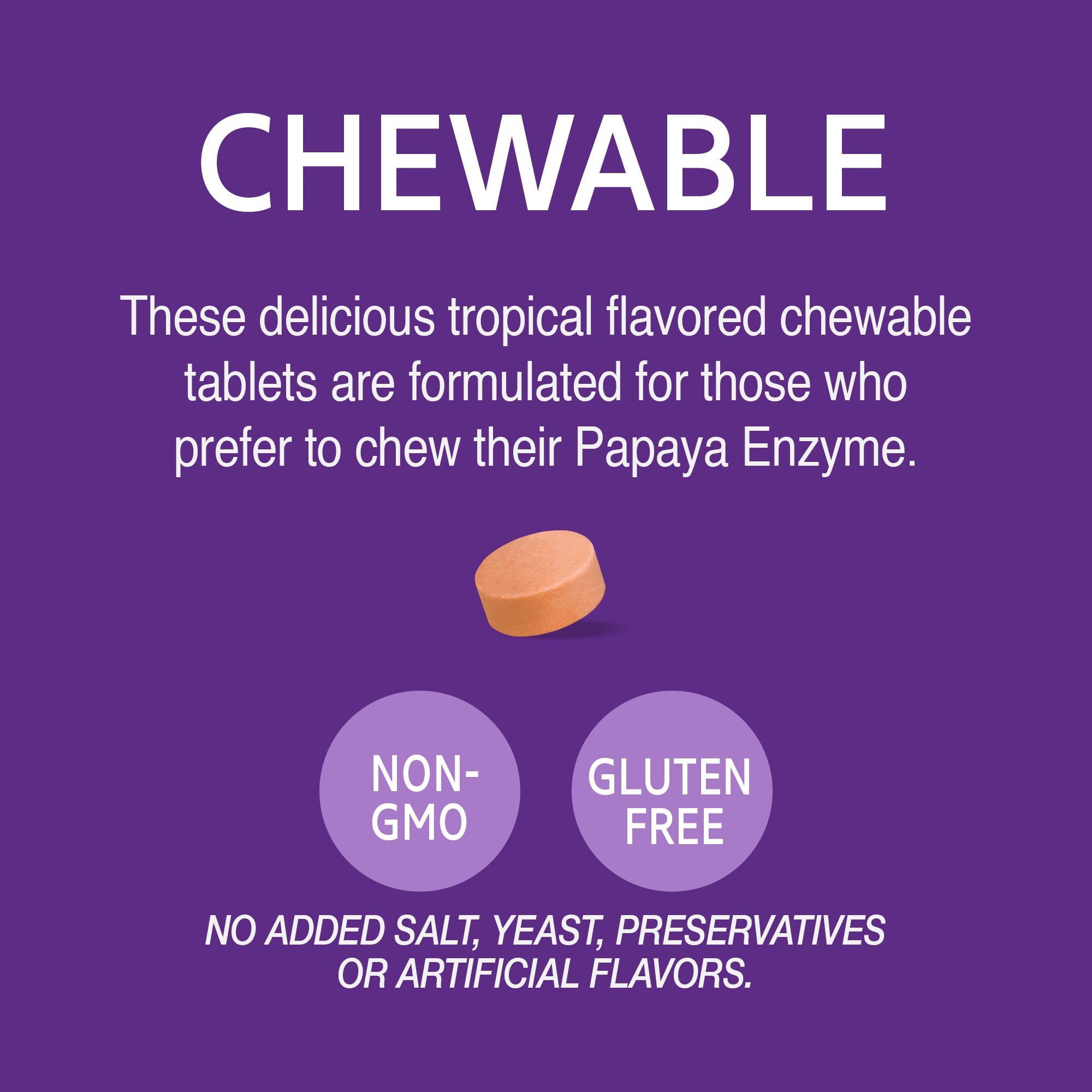 A Enzima de Papaia é um delicioso comprimido mastigável que auxilia a função digestiva.