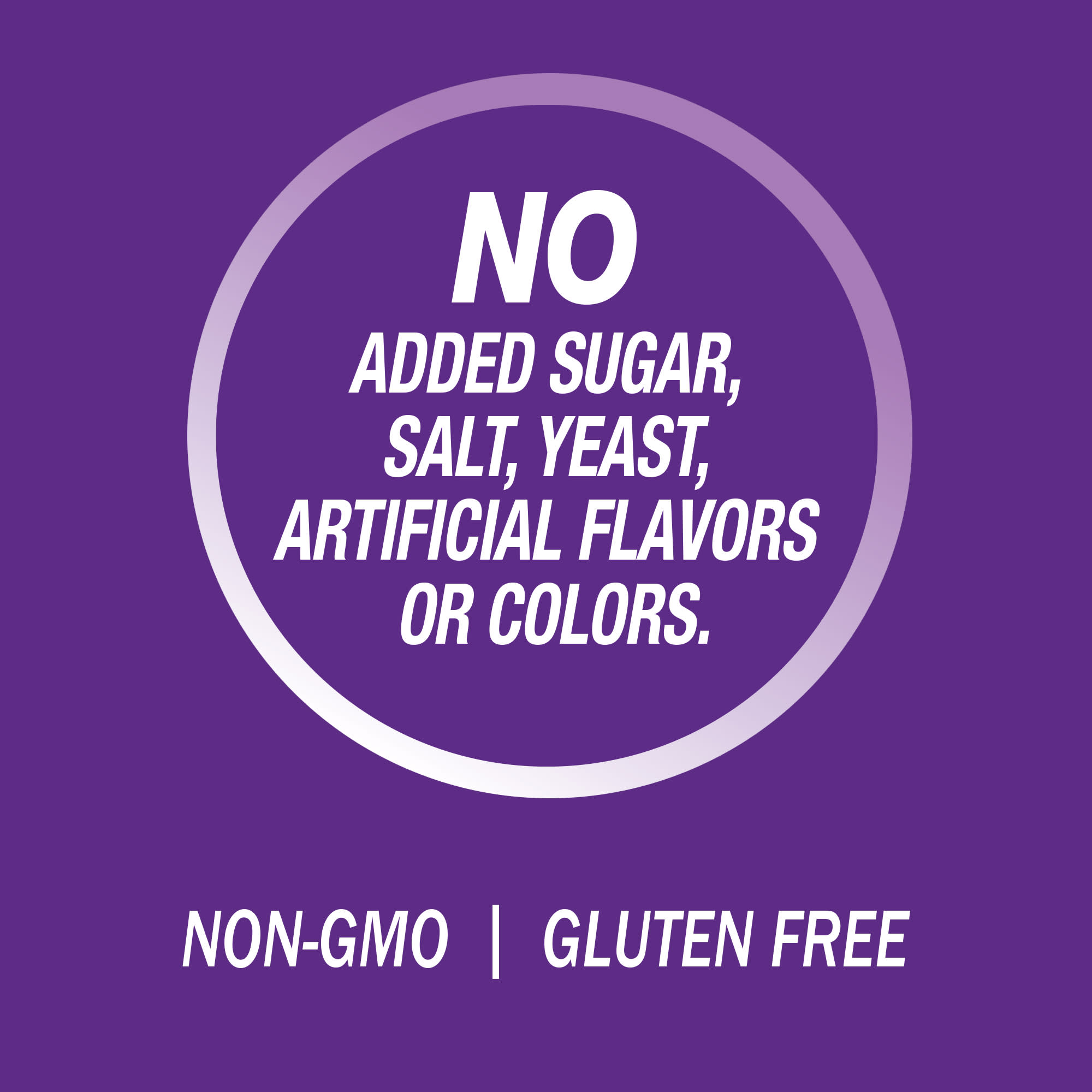 Sem adição de açúcares, sal, levedura, sabores ou corantes artificiais.