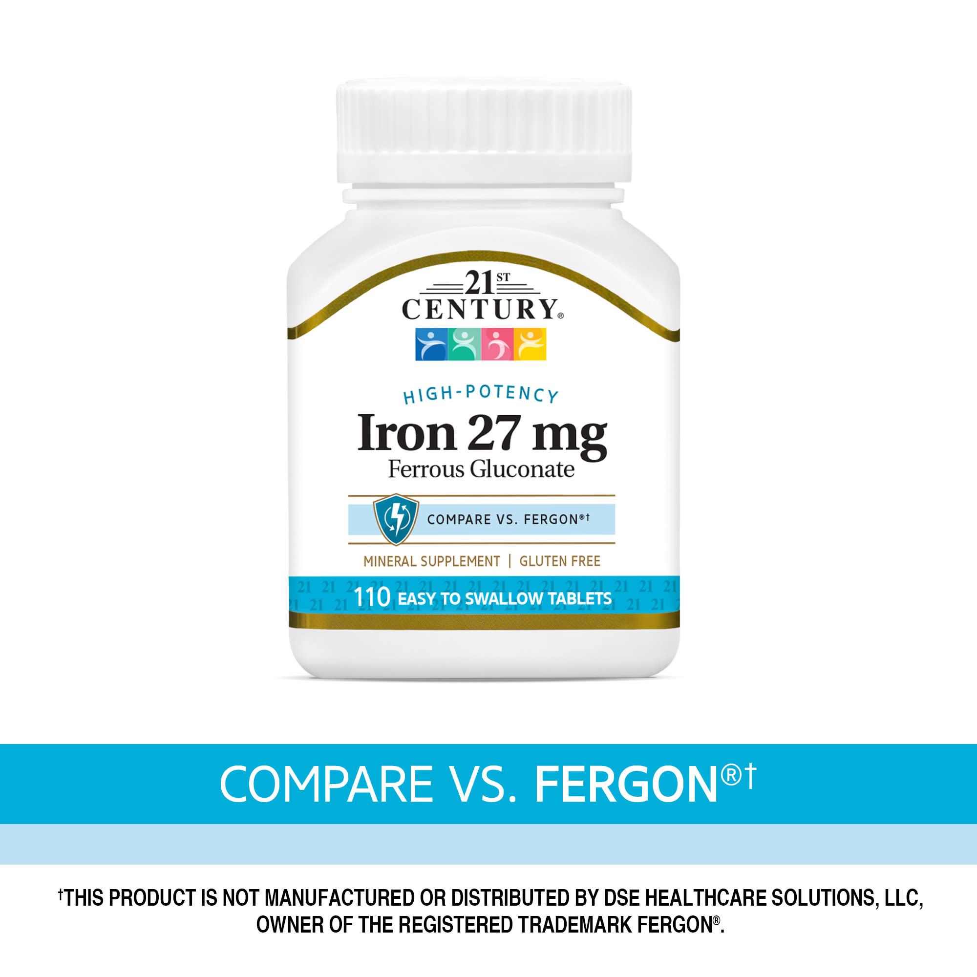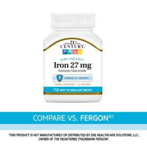 21st Century Ferro de Alta Potência 27 mg 110 Comprimidos Fáceis de Engolir – 21st Century Suplementos Minerais Ferro.