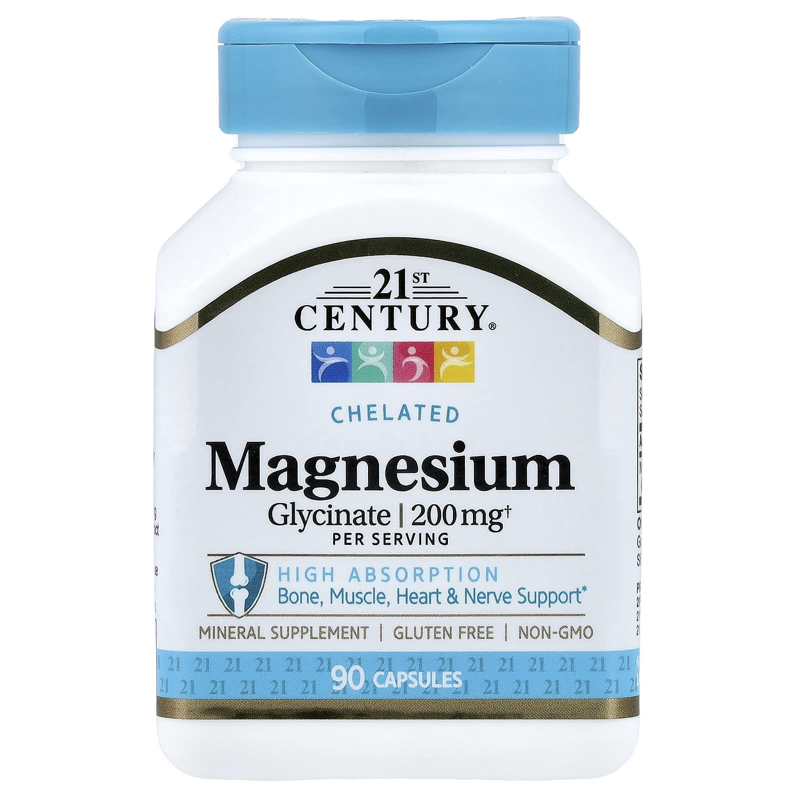 21st Century Glicinato de Magnésio Quelado 90 Cápsulas (100 mg por Cápsula) – 21st Century Suplementos Minerais Magnésio Glicinato de Magnésio.