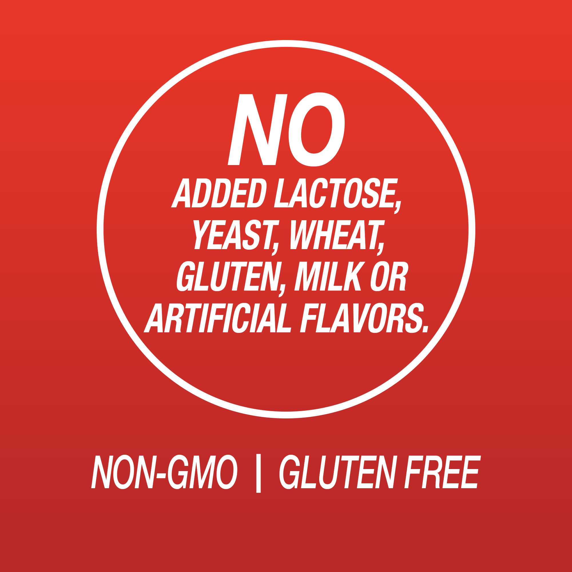 Sem adição de lactose, levedura, trigo, glúten, leite, sabores artificiais ou cores.