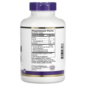 EPA e DHA são ácidos graxos Ômega-3 importantes que promovem a saúde cardiovascular, além de serem componentes importantes das células do corpo. O Óleo de Peixe da 21st Century contém concentrado de óleo de peixe destilado molecularmente de alta qualidade.