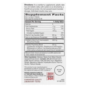 21st Century Probiótico Cranberry Plus 60 Comprimidos – 21st Century Suplementos Ervas Suplementos de Cranberry Saúde Intestinal Probióticos.
