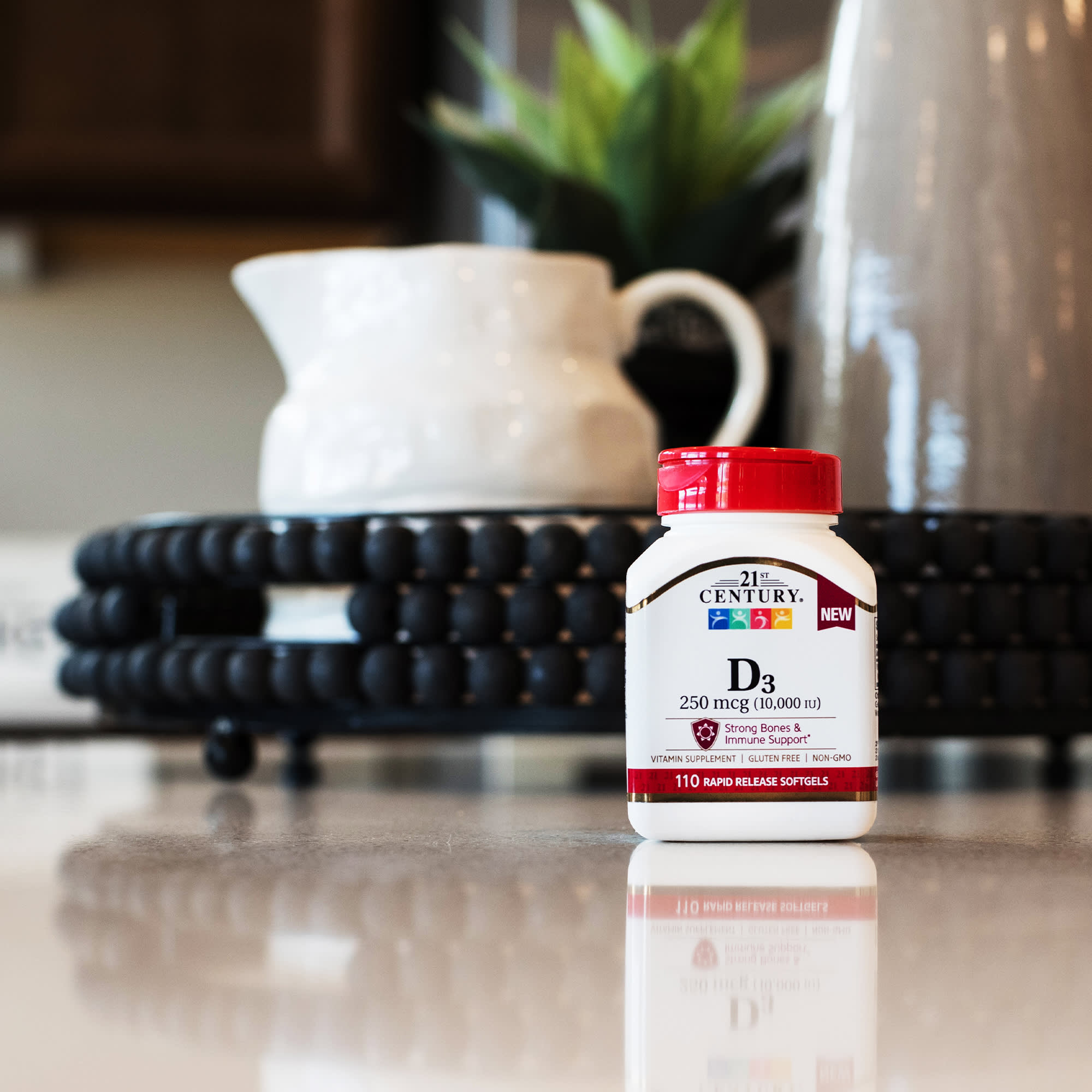 21st Century Vitamina D3 250 mcg (10.000 UI) 110 Cápsulas Softgel de Liberação Rápida – 21st Century Suplementos Vitaminas Vitamina D.