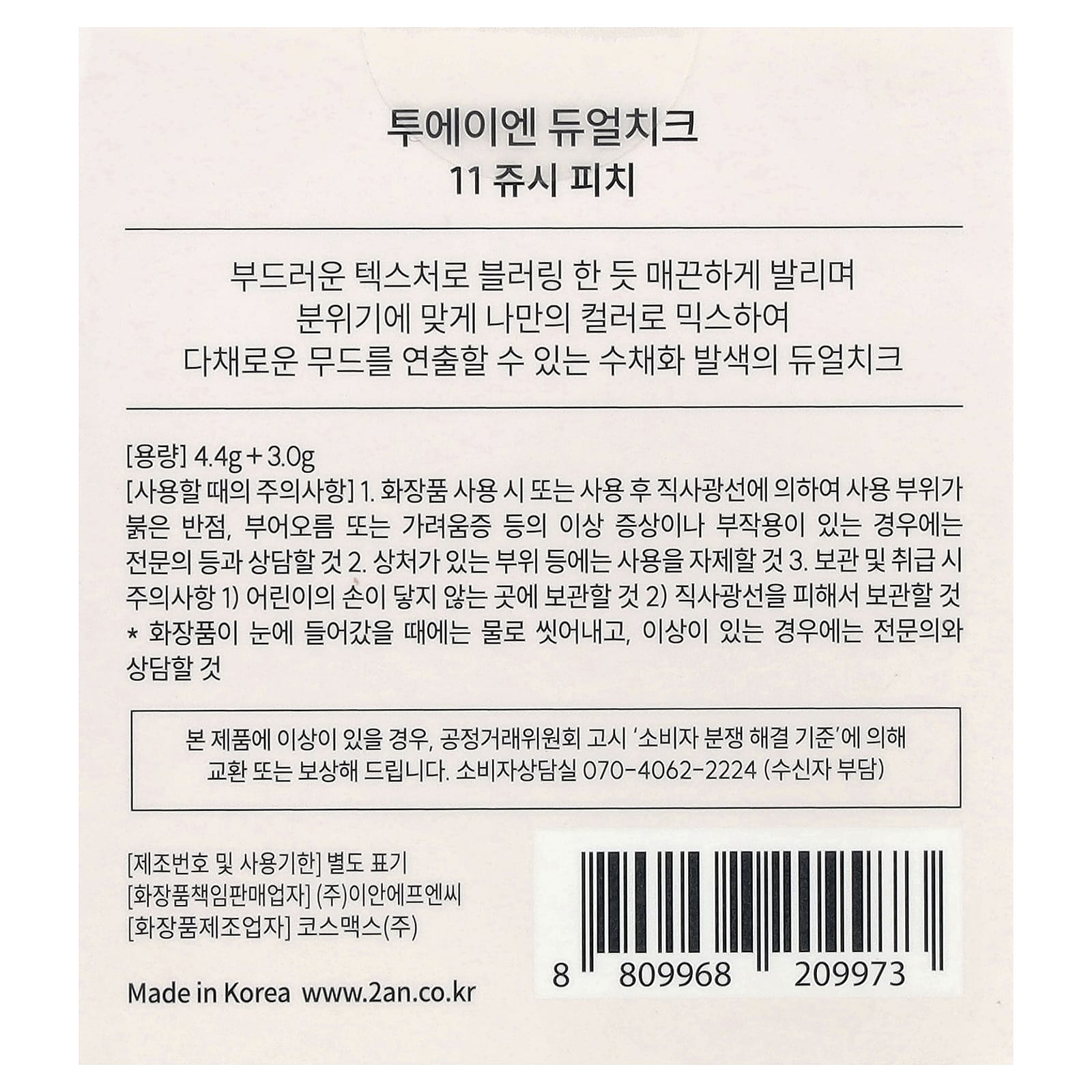 2aN Dual Cheek 11 Pêssego Suculento 74 g – 2aN Beleza Maquiagem Rosto Blush Blushes K-Beauty.
