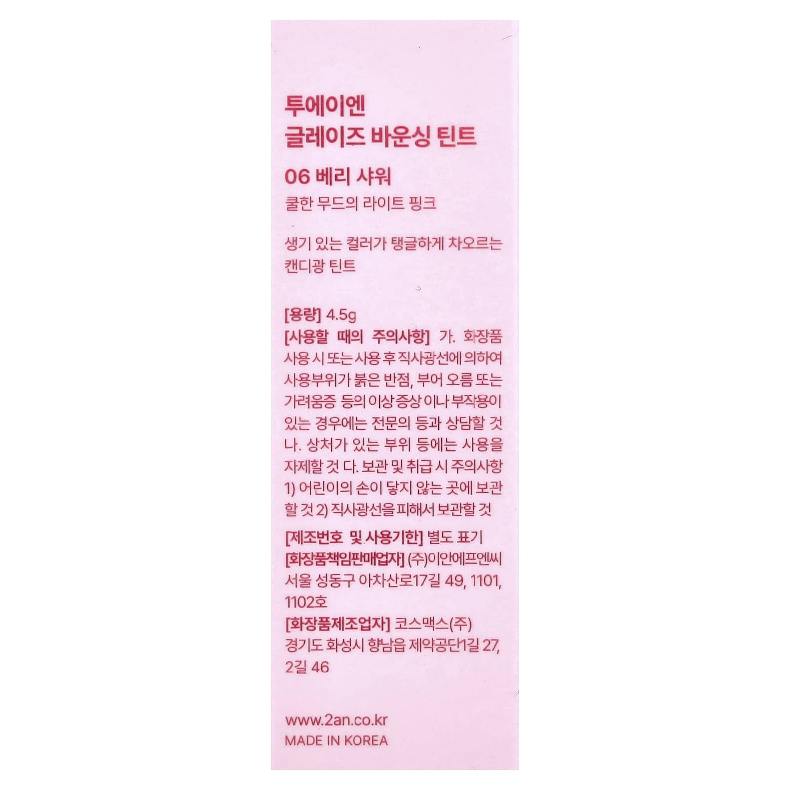 2aN Glaze Bouncing Tint 06 Berry Shower 45 g – 2aN Beleza Maquiagem Lábios Lip Tint Lip tints K-Beauty.