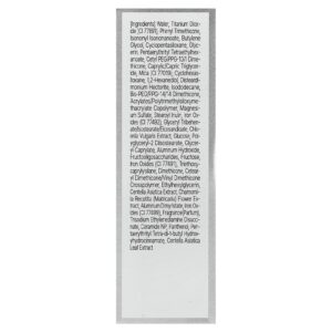 Água, dióxido de titânio (CI 77891), phenyl trimethicone, isononyl isononanoate, butilenoglicol, decametilciclopentasiloxano, glicerina, pentaerythrityl tetraethylhexanoate, cetyl peg/ppg-10/1 dimethicone, caprylic/capric triglyceride, mica (CI 77019), ciclohexasiloxano, 1,2-hexanediol, disteardimonium hectorite, isododecane, dimeticona bis-peg/ppg-14/14, acrylates/polytrimethylsiloxymethacrylate copolymer, sulfato de magnésio, estearoil inulina, óxidos de ferro (CI 77492), tribohenate de glicerila/isoestearato/eicosandioato, extrato de Chlorella vulgaris, glicose, polyglyceryl-2 diisostearate, caprilato de glicerila, hidróxido de alumínio, fruto-oligossacarídeos, frutose, óxidos de ferro (CI 77491), triethoxycaprylylsilane, dimeticona, crospolímero de cetoestearílico de dimeticona/vinil dimeticona, ethylhexylglycerin, extrato de Centella asiatica, extrato da flor de Chamomilla recutita (matricária), aluminum dimyristate, óxidos de ferro (CI 77499), fragrância (perfume), trisodium ethylenediamine disuccinate, ceramida NP, pantenol, pentaerythrityl tetra-di-t-butyl hydroxyhydrocinnamate, extrato da folha de Centella asiatica.