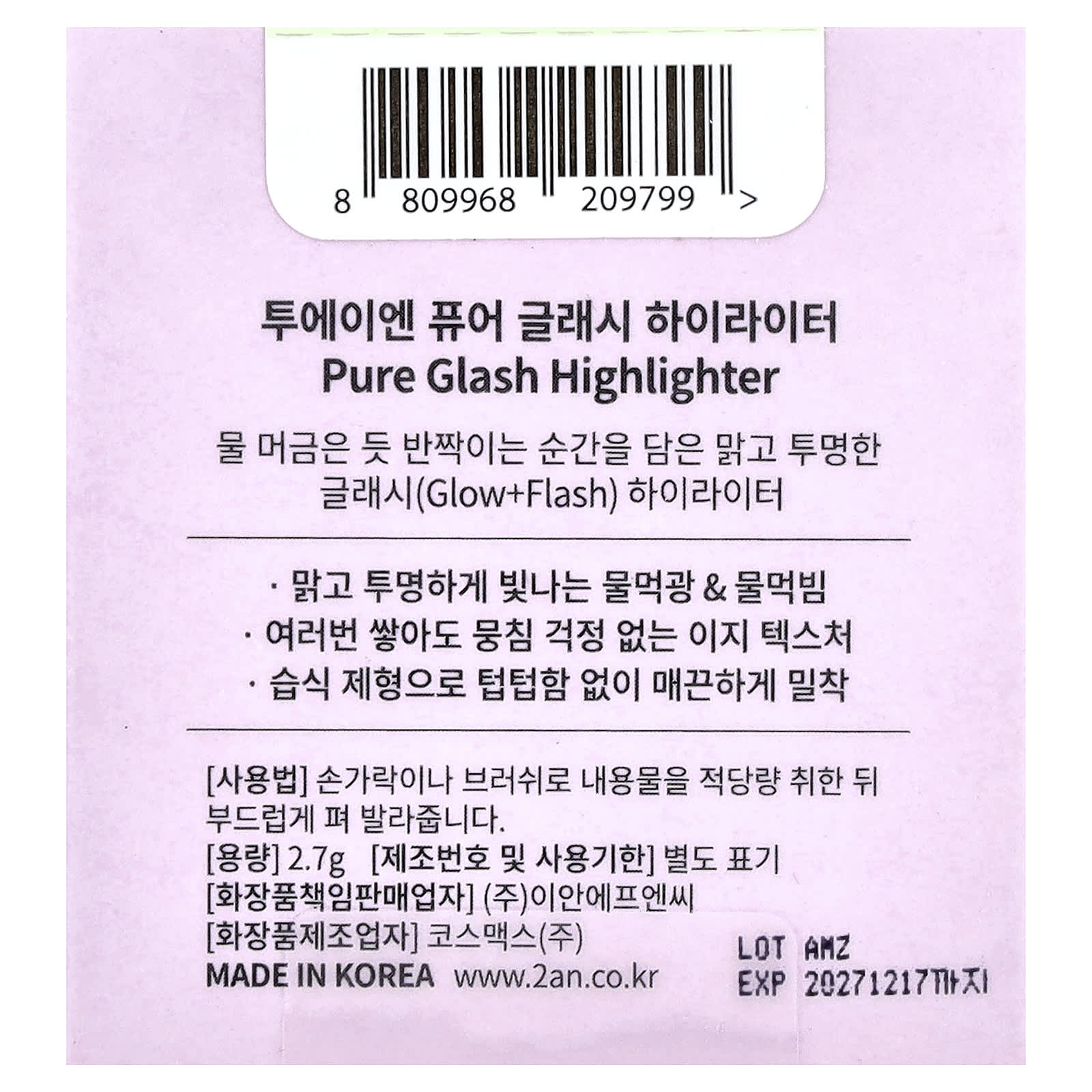 2aN Iluminador Pure Glash Bomba de Limão GN01 27 g – 2aN Beleza Maquiagem Rosto Iluminador Iluminadores K-Beauty.