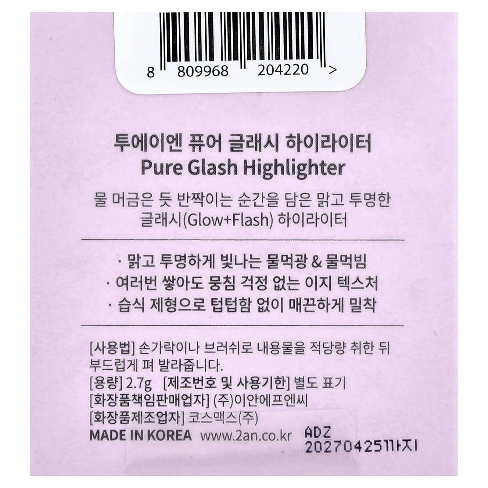 2aN Iluminador Pure Glash PK01 Sereia 27 g – 2aN Beleza Maquiagem Rosto Iluminador Iluminadores K-Beauty.