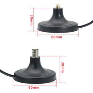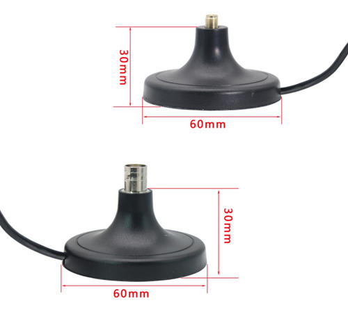 Comprimento do cabo: 3 metros (10 pés) Impedância: 50 Ohm Diâmetro da base magnética: 6 cm/2,4 polegadas Cor: preto Material: plástico Conteúdo do pacote: 2 x Base de antena