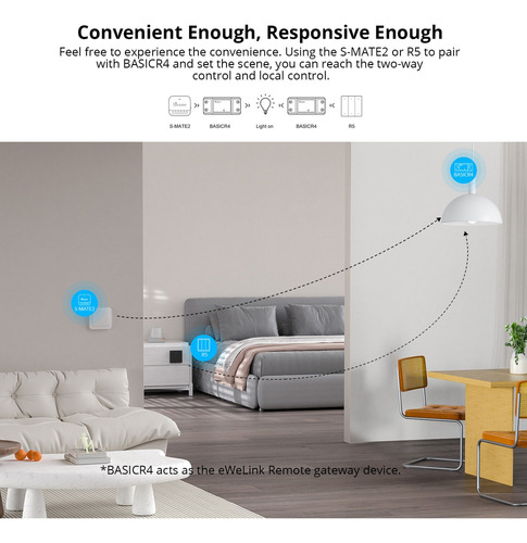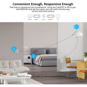 –Um switch inteligente com função de gateway eWeLink-Remote. Você pode adicionar subdispositivos eWeLink-Remote, usar S-Mate2 ou R5 para emparelhar com BASICR4 e, em seguida, definir o cenário, você pode obter controle bidirecional e controle local.