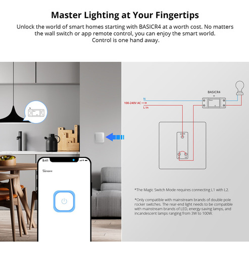 –Você ainda pode controlar o interruptor de luz através do aplicativo, mesmo desligando um interruptor de parede tradicional. Não importa o interruptor de parede ou o controle remoto do aplicativo, você pode aproveitar o mundo inteligente.