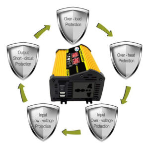 (4). Proteção múltipla – Fusíveis embutidos, design de carregamento seguro e ventilador de resfriamento evitam que o conversor de energia do carro superaqueça, economizando energia e energia. sobretensão, sobrecarga, sobrecorrente, curto-circuito, subtensão, superaquecimento, proteção contra curto-circuito .