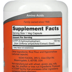 1. Suporte Natural para o Equilíbrio e Bem-Estar: O 5-HTP da fornece 100mg de 5-Hidroxitriptofano por cápsula, um precursor natural do neurotransmissor serotonina, conhecido por seu papel no suporte ao equilíbrio e bem-estar emocional. Este suplemento é ideal para quem busca uma abordagem natural para manter o equilíbrio emocional.
