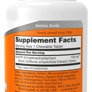 Kit 5-HTP 100mg Now Foods 90 Chewables + Porta Cápsulas Suporte Eficiente com 5-HTP: O 5-HTP 100mg da Now Foods, apresentado em forma de chewables (mastigáveis), oferece um suporte eficiente e conveniente. Ideal para quem busca os benefícios do 5-HTP de uma maneira agradável e fácil de consumir. Formato Mastigável e Saboroso: Estes chewables são uma alternativa prática às cápsulas tradicionais. Com 90 unidades por frasco, são ideais para quem prefere uma forma mais agradável de suplementação, tornando a adesão ao uso diário mais fácil. Produto Importado com Disponibilidade Imediata: Importado para garantir a mais alta qualidade, este suplemento de 5-HTP está disponível para pronta entrega. Assim, você pode começar a utilizar o produto sem longas esperas. Porta Cápsulas com Duas Repartições: O kit também inclui um porta-cápsulas prático, dividido em duas seções internas. Isso permite uma organização eficaz e separada de diferentes tipos de cápsulas ou pílulas. Composição Concentrada e Pura: Cada chewable contém 100mg de 5-HTP, oferecendo uma dosagem concentrada e eficaz. Este produto é livre de aditivos desnecessários, garantindo uma experiência pura e direta. Validade longa
