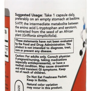 1. Suporte Nutricional Eficiente: O 5-HTP da Now Foods fornece 50mg por cápsula, oferecendo um suporte nutricional eficiente. Este suplemento é uma opção excelente para quem busca um auxílio natural na sua rotina diária.