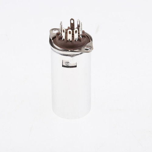 Pequeno soquete de tubo de baquelite de 9 pinos com tampa de alumínio, mola embutida, pode dissipar rapidamente o calor e proteger efetivamente o tubo de danos, altura 55 mm, distância do orifício central de instalação 28 mm, abertura do painel 18,5 mm, adequado para altura pequena menor que Tubo de 9 pinos de 55 mm.
