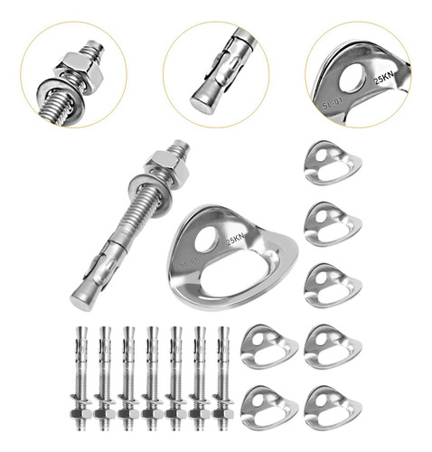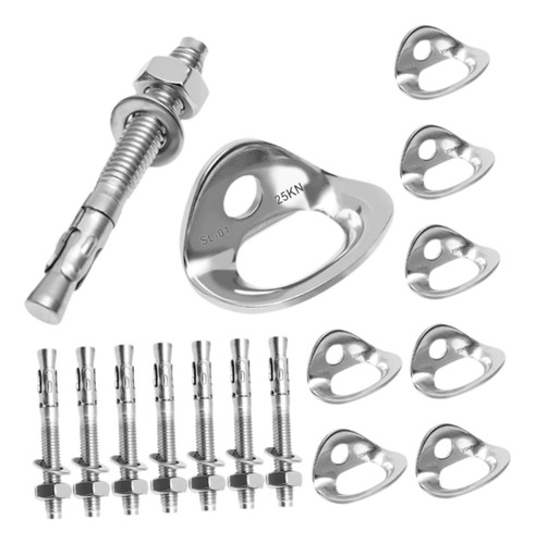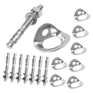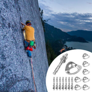 Pacote: Vem como um conjunto de 8 peças de ganchos e parafusos de ancoragem para escalada, fornecendo amplo hardware para equipar vários pontos durante suas expedições – ideal para aventureiros individuais que procuram aprimorar sua configuração de equipamentos ou grupos que precisam de soluções de ancoragem confiáveis em seus