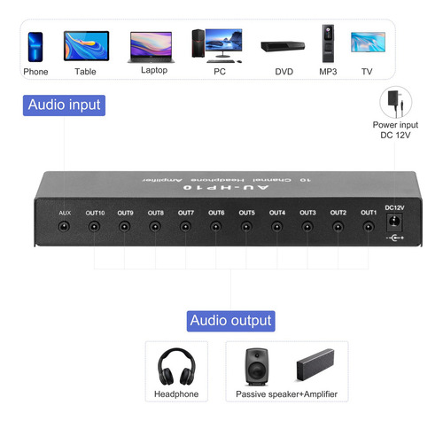 3. 5mm Stereo Headphone Amplifier 10 Ways Output Multi-Channels Audio Distributor Independent Control Amplifier |