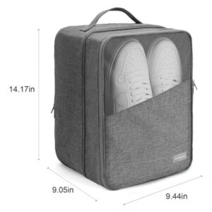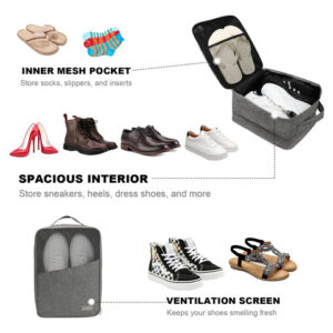 ARRUME SEUS SAPATOS COM ESTILO Embalar sapatos não é mais um incômodo. Tudo o que você precisa fazer é colocar seus tênis nesta bolsa de viagem, que é pequena o suficiente para caber na bagagem de mão e leve o suficiente para deslizar na alça da mala! A parte externa deste cubo de embalagem de sapatos é parcialmente de malha, com muitos orifícios de ventilação. Isso não apenas ajuda você a saber qual par está dentro com uma única aparência, mas também ajuda seus sapatos a permanecerem com um cheiro limpo e fresco. Também é feito de material impermeável, mantendo seus sapatos de festa e Nikes protegidos de qualquer contato com a água. Com dois bolsos extras – um bolso com zíper na parte externa e outro bolso de malha para suas meias e inserções de sapatos na parte interna – esta bolsa está pronta para transportar todas as suas necessidades de calçados. ALÉM DISSO, AQUI ESTÁ NOSSA PROMESSA PARA VOCÊ: Queremos que nossos produtos facilitem sua vida, sem estressá-lo. É por isso que, se você tiver alguma dúvida ou preocupação sobre esta mala de viagem para tênis, não hesite em entrar em contato! Trabalharemos com você até que esteja satisfeito. – GRANDE CAPACIDADE: 14,17 “L x 9,44" L x 9,05" H. Nossa bolsa de sapatos pode acomodar sapatos de até tamanho 14. A bolsa de armazenamento de sapatos pode proteger a maioria dos tamanhos e tipos de calçados, incluindo couro, dança, golfe, futebol, academia e muito mais. Mantenha seus sapatos separados das roupas e em ótimas condições durante a viagem. – 3 camadas para organizar os sapatos: transportar até 3 pares de sapatos em um estilo elegante e que economiza espaço. Nossa bolsa para sapatos de viagem vem com um compartimento principal que pode acomodar sapatos de até 12 (tamanho grande) e 14 (bolsa de sapatos extra grande) e 1 compartimento para guardar chinelos e sandálias. – Alta qualidade e à prova d'água: feita de tecido de poliéster rip-stop de alta qualidade, zíperes bidirecionais duráveis, resistentes à água e lisos. O design de malha mantém os itens respiráveis e higiênicos. – FUNCIONAL E VERSÁTIL: não é apenas uma bolsa de sapatos. Você também pode usá-lo como bolsa de higiene, bolsa de maquiagem, organizador de roupas íntimas, cubo de embalagem, bolsa de roupa suja e para outros usos. Ele pode armazenar vários itens para atender às diferentes necessidades de viagem. – NOSSA PROMESSA PARA VOCÊ: Queremos que nossos produtos facilitem sua vida, não o estressem. É por isso que, se você tiver alguma dúvida ou preocupação sobre esta mala de viagem para tênis, não hesite em entrar em contato! Trabalharemos com você até que esteja satisfeito.