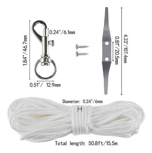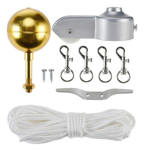 s de reparo de peças de ferragens para mastro de , corda de adriça d pés + bola de ouro de 3 + presilha de liga de 4 + 4 clipes de gancho de metal + caminhão de mastro para topo de 2