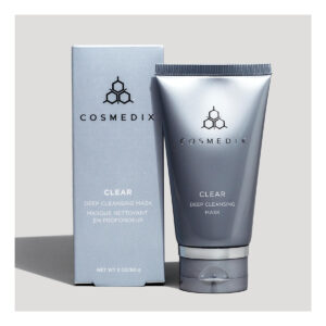 Máscara de limpeza profunda COSMEDIX Clear, ajuda a melhorar o tom e a textura da pele, ajuda a desobstruir os poros e reduzir a vermelhidão. O óleo de melaleuca e a argila de caulim – Pele mais saudável – limpa funcionam eliminando as impurezas que obstruem os poros e ajuda a equilibrar a produção de óleo com uma combinação de argila de caulim, ácido salicílico e enxofre. A niacinamida ajuda a melhorar a textura da pele, enquanto os vegetais calmantes ajudam a reduzir a aparência de vermelhidão – Retém a umidade vital – Os hidratantes condicionadores ajudam a atrair e reter a umidade vital da pele – Defesa do estresse – Os antioxidantes que combatem os radicais livres defendem a pele do estresse ambiental que pode causar inflamação e danos ao colágeno e elastina – Pele mais clara – Ingredientes como ácido salicílico e complexo AGP ajudam a estimular a renovação celular para conter erupções cutâneas – Reduz manchas — ajuda a uniformizar o tom da pele, reduzindo a aparência de cicatrizes de acne e manchas escuras e hiperpigmentação