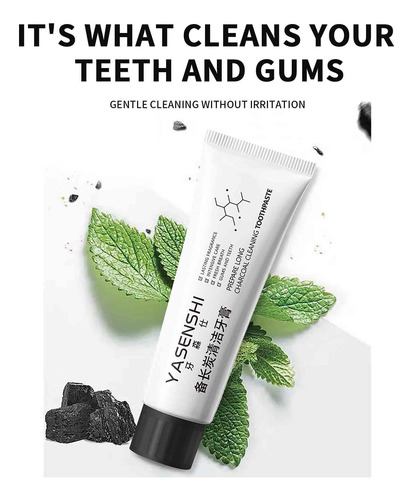 O creme dental Binchotan Charcoal Cleaning limpa a boca, refresca o hálito, remove manchas amarelas e protege as gengivas