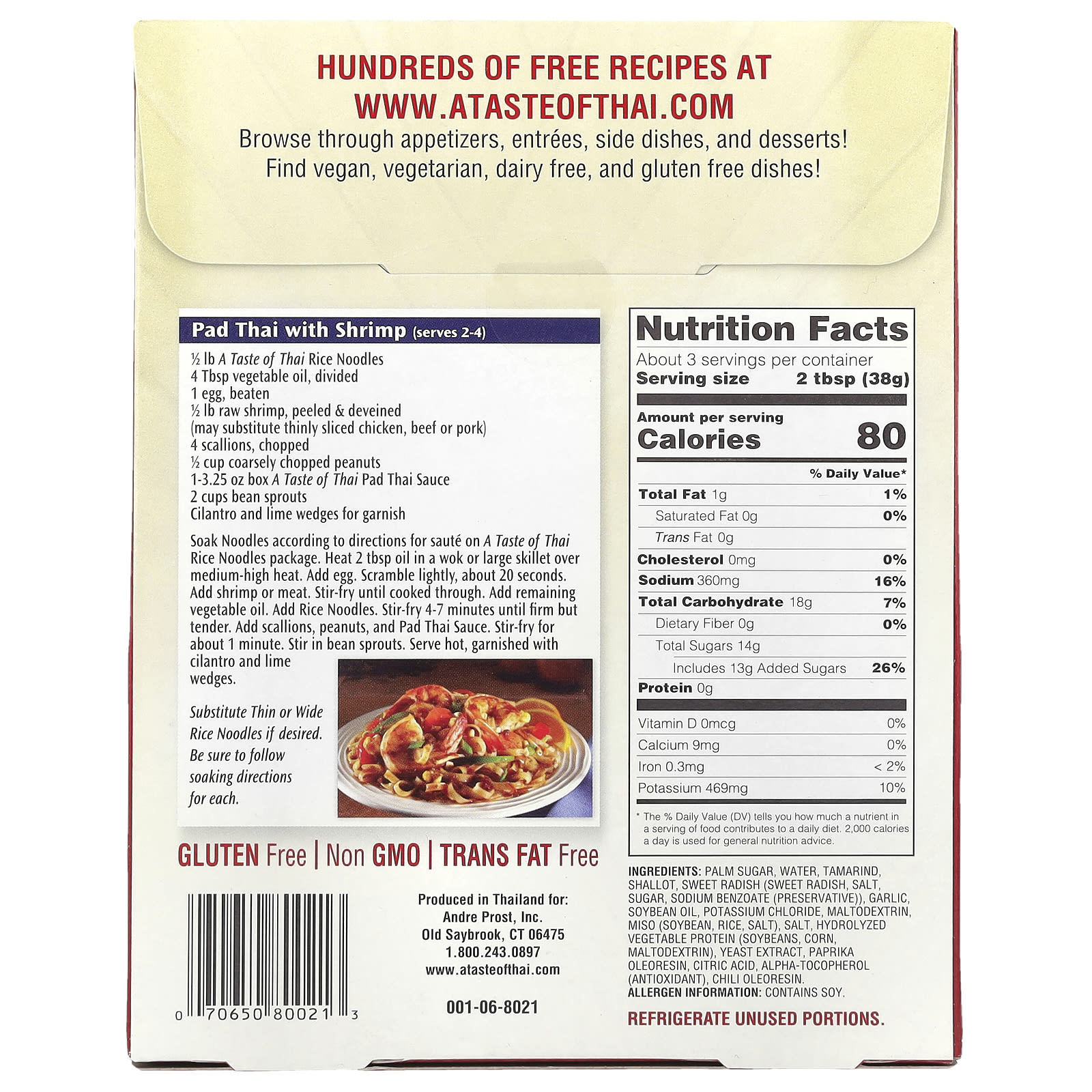 • 1 caixa de 3,25 oz do Molho de Pad Thai da A Taste of Thai
