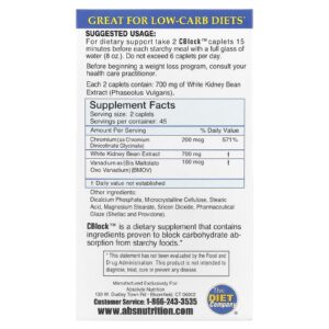 Absolute Nutrition CBlock™ Bloqueador de Carboidratos/Amido 90 Cápsulas – Absolute Nutrition Suplementos Controle de peso Fórmulas Dietéticas Extrato de feijão branco.