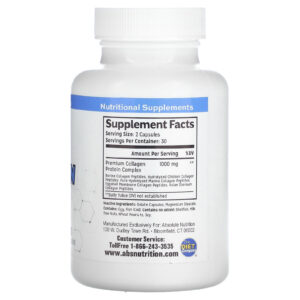 Absolute Nutrition Complexo de Colágeno Premium Tipo I II V X 60 Cápsulas – Absolute Nutrition Suplementos Ossos, Articulações e Cartilagem Colágeno, Suplementos.