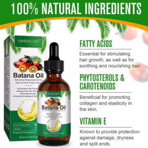 Óleo de batana orgânico para cabelos saudáveis, óleo de batana para o crescimento do cabelo, 100% natural, promove o bem-estar do cabelo para homens e mulheres, melhora o brilho do cabelo e da pele, deixa o cabelo livre de BPA, sem parafina, sem ftalatos, sem sulfato e sem formaldeído. Prensado a frio a partir da noz da planta, a atividade antioxidante do óleo de batana o torna um complemento ideal para produtos cosméticos, pois ajuda a nutrir e proteger a pele de fatores ambientais estressantes. Óleo facial antienvelhecimento 100% puro, óleo de batana prensado a frio O óleo rico em vitaminas ajuda a nutrir e hidratar a pele seca e áspera do rosto e do corpo. Ajuda a combater a perda de umidade e a minimizar a aparência de linhas finas e rugas. Como usar o óleo de batana pode ser usado sozinho ou adicionado a produtos para o cuidado da pele, como cremes, loções, bálsamos e óleos de massagem. Você pode usá-lo como soro facial ou como óleo transportador todas as manhãs e noites. – Óleo de batana 100% orgânico O óleo de batana é 100% puro, natural, orgânico, prensado a frio em uma garrafa, livre de substâncias químicas nocivas, por isso é seguro para ajudar a promover a saúde do couro cabeludo e o crescimento da espessura. – Óleo de batana para o crescimento do cabelo O óleo de batana rico em vitaminas A, C e E é eficaz para hidratar cabelos, pele e unhas, deixando você com o desejado brilha, também é um excelente hidratante para o cabelo que nutre os folículos capilares, tornando os cabelos mais saudáveis e fortes. Nutre o cabelo da raiz às pontas, promovendo um crescimento saudável e prevenindo danos. – Hidrata o rosto, a pele e o cabelo O óleo de Batana não só melhora a saúde do cabelo, mas também melhora a luminosidade da pele, deixando-a com um brilho natural e jovem. O óleo rico em vitaminas ajuda a nutrir e hidratar a pele seca e áspera do rosto e do corpo. – Adequado para todos Com sua fórmula leve e aroma agradável, o óleo de batana é fácil de usar e pode ser incorporado à sua rotina diária sem problemas. Pode ser dado de presente a qualquer pessoa. – Como usarAplique o óleo de batana nos cabelos ou na pele úmidos ou secos, massageando suavemente o couro cabeludo ou a pele. Concentre-se nas dicas para adicionar umidade ou use-as como um tratamento condicionador para obter mais brilho.