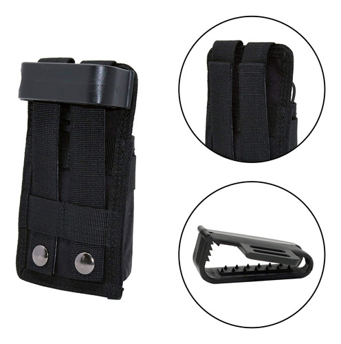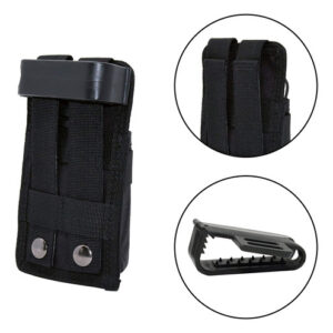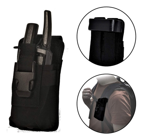 Clakit foi concebido enquanto caminhava pelas montanhas da Califórnia e percebia que tudo estava nas nossas costas, até mesmo itens que usávamos com frequência. Quando você precisa acessar algo, você precisa parar, remover seu pacote, procurar o (s) item (s) e depois reembalar. Ou isso ou pare e peça à pessoa atrás de você que vasculhe sua bolsa. Seja água, rádio, smartphone, mapa, carteira, lanche ou licenças, tudo parecia estar localizado de forma inconveniente. O Clakit desloca o armazenamento das costas para a frente do corpo. Isso torna os itens usados com frequência mais acessíveis e seguros. Sobre o rádio/GPS StrapPack Os Clakit StrapPacks são bolsos leves e resistentes à água que se prendem a qualquer lugar ao longo de uma alça ou cinto, exigindo apenas 2 polegadas de espaço na alça. Com o clipe patenteado, ajuste sua bolsa de forma segura e antiderrapante. É fácil de instalar – basta enrolar o clipe ao redor da alça desejada e apertar para travar. A bolsa cabe na maioria dos rádios e GPS de até 3w x 2d x 7h (não incluindo antena). Os StrapPacks podem ser instalados nas alças direita e esquerda. Você pode até mesmo instalar vários StrapPacks em uma única alça. O clipe pode ser reutilizado com qualquer acessório que tenha uma presilha, clipe ou suporte molle. Você também pode utilizar GoPros e câmeras similares (requer adaptador – não incluído). – Cordura de nylon leve, pesada e resistente à água 1000D. Prende-se à sua mochila uma alça de ombro, cinto ou qualquer alça de até 3 polegadas usando um clipe Clakit patenteado (incluído) – O StrapPack fornece uma bolsa com retentor elástico para transportar com segurança um pequeno rádio UHF/VHF/800 MHz ou GPS na frente da mochila. – Oferece acesso rápido e fácil aos seus aparelhos eletrônicos e os mantém protegidos contra roubo. Serve para a maioria dos modelos pequenos de rádio/GPS de até 3 l x 2 x 7 h (sem incluir antena). – O clipe oferece um ajuste seguro, antiderrapante, sem ressalto e confortável. Testado a 120 mph e 25 libras. Fácil de instalar; basta enrolar o clipe na alça de ombro e apertar para travar. – O clipe pode ser reutilizado com qualquer acessório que tenha presilha de cinto, clipe de cinto ou suporte molle. Também funciona com câmeras GoPro ou similares (requer adaptador curvo – não incluído)