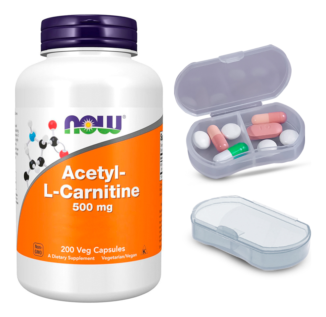 Acetil L-carnitina 500mg Now Foods 200 Caps + Porta Cápsulas
