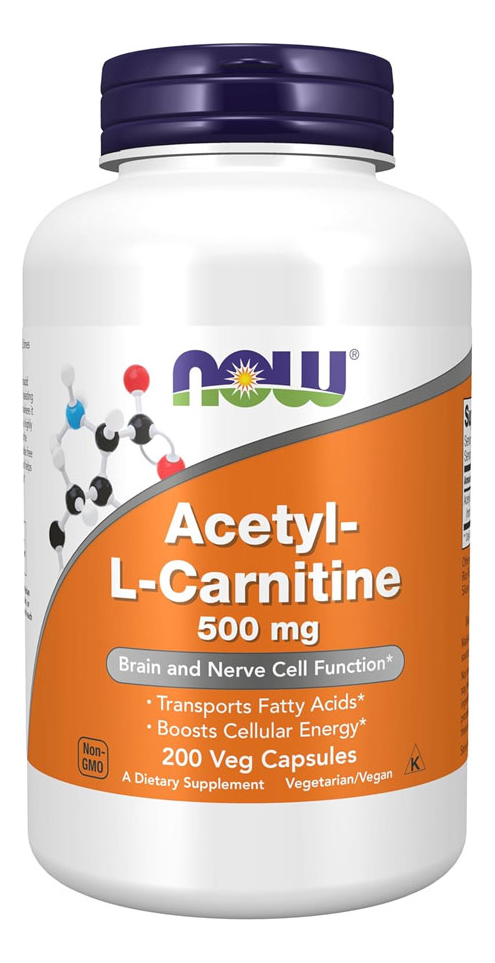 Acetil L-carnitina 500mg Now Foods 200Veg Caps Produto Importado