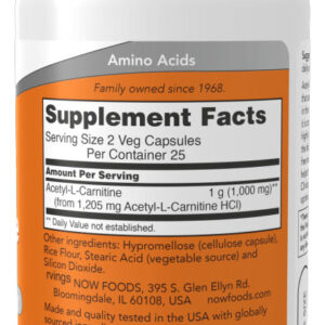 Acetil L-carnitina 500mg Now Foods 50 Caps + Porta Cápsulas