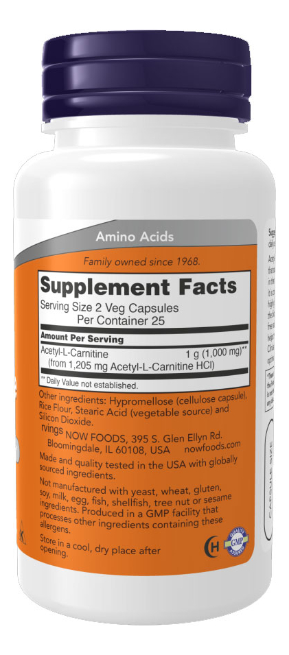 Acetil L-carnitina 500mg Now Foods 50veg Caps Importado 4un