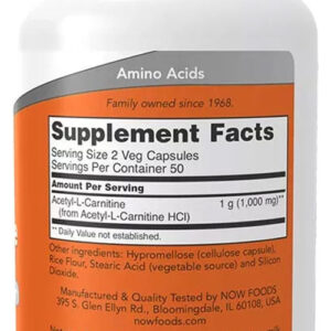 Acetil L-Carnitina 500mg Now Foods L-Carnitine 100 Veg Caps Desempenho Esportivo Vegano Suplemento Alimentar Natural – No Brasil