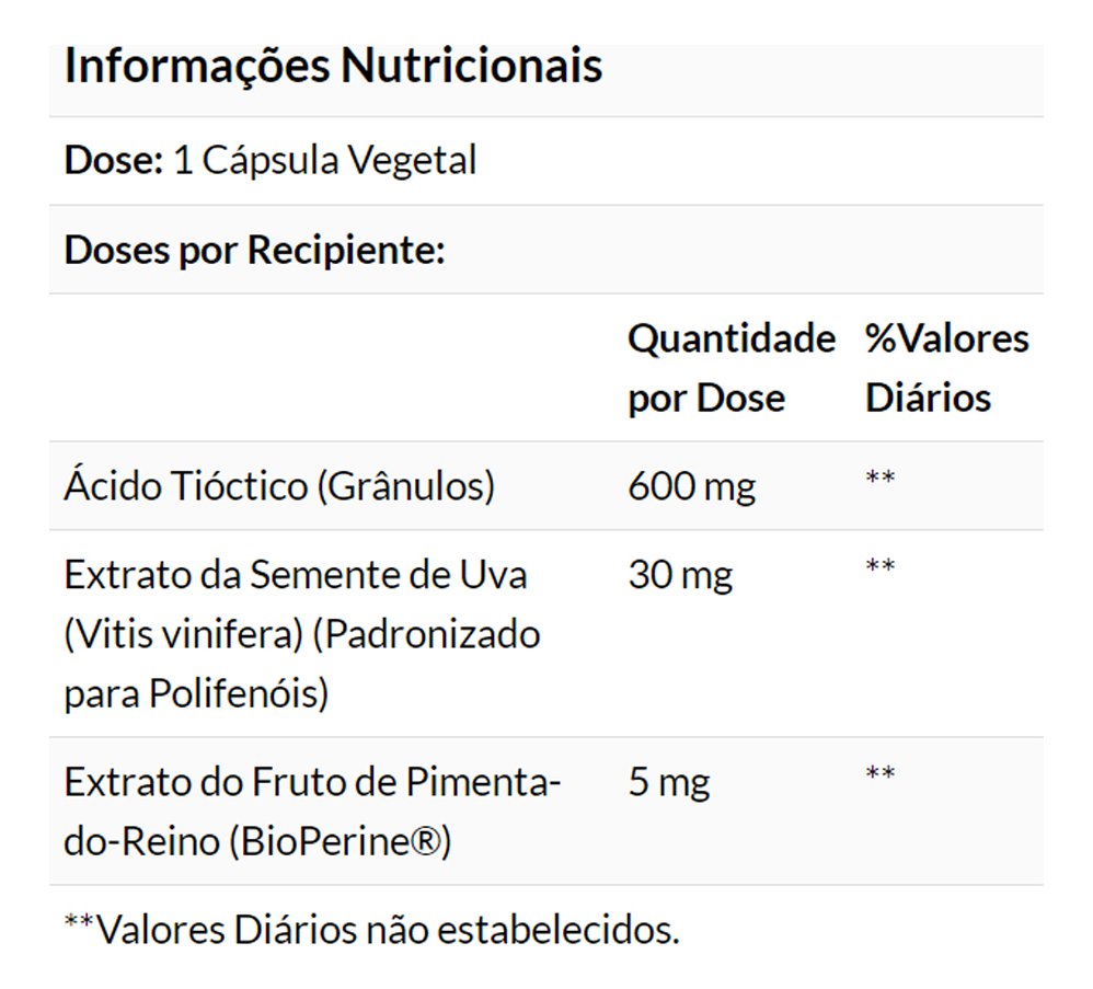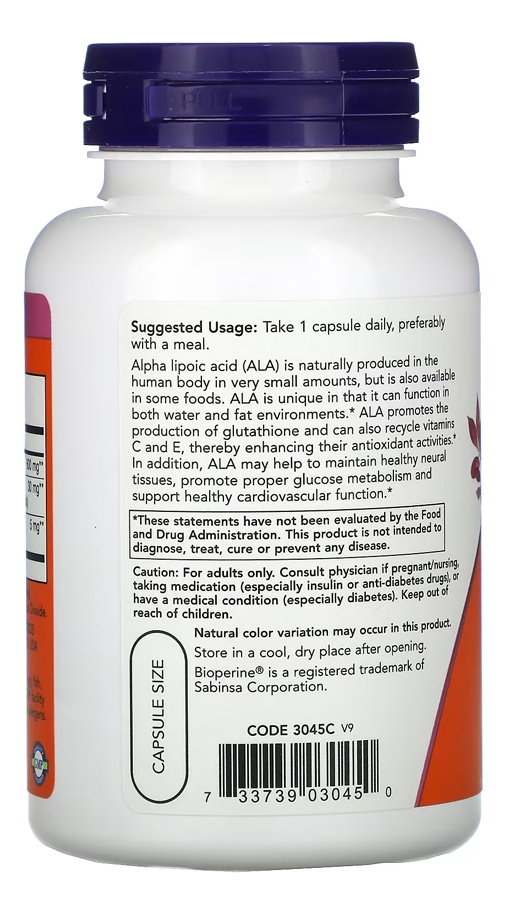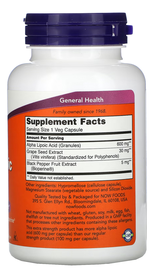 5. O Ácido Alfa Lipóico 600mg da Now Foods é uma escolha ideal para quem procura um suplemento importado de alta qualidade, fácil de incorporar no cotidiano. Com sua composição cuidadosa e a praticidade das cápsulas vegetais, oferece um suporte eficiente e prático para o seu dia a dia. VALIDADE LONGA
