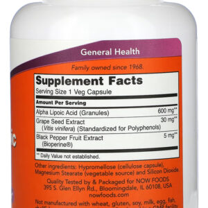 1. Suporte Avançado: O Ácido Alfa Lipóico 600mg da Now Foods, com uma dosagem potente por cápsula, oferece suporte avançado, sendo ideal para quem busca um complemento eficaz em sua rotina. Com 120 cápsulas vegetais por embalagem, este suplemento se destaca pela sua eficiência e durabilidade.